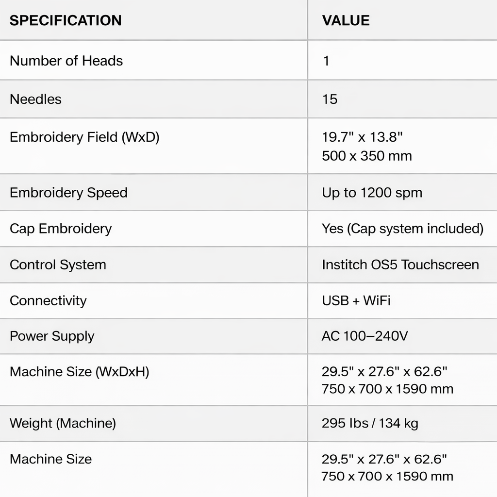 What sets The Mirror apart is its balance between power and usability. The Institch OS5 touchscreen control system keeps operation straightforward, allowing quick design loading, adjustments, and job management directly from the machine. With built-in USB and WiFi connectivity, transferring files and managing workflow becomes seamless, reducing downtime and keeping production moving.